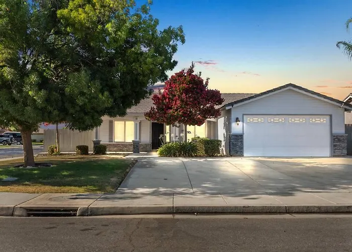 Self-catering facilities include a microwave, an electric kettle, and a refrigerator, provided in a dining area. Bakersfield bus station is a walk from the villa.